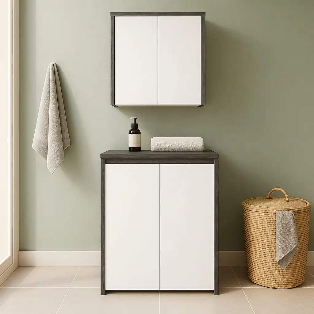 Lale Serisi | Sakarya Banyo Dolabı Modelleri | ADADUŞ, Adaduş banyo dolabı serimizden — su geçirmez MDF + PVC kaplama, yumuşak kapanan menteşe ve seramik lavabo dahil komple set. Erenler/Sakarya atölyemizde üretiliyor; yerinde ücretsiz keşif sonrası 5–7 iş günü içinde teslim ediyoruz.