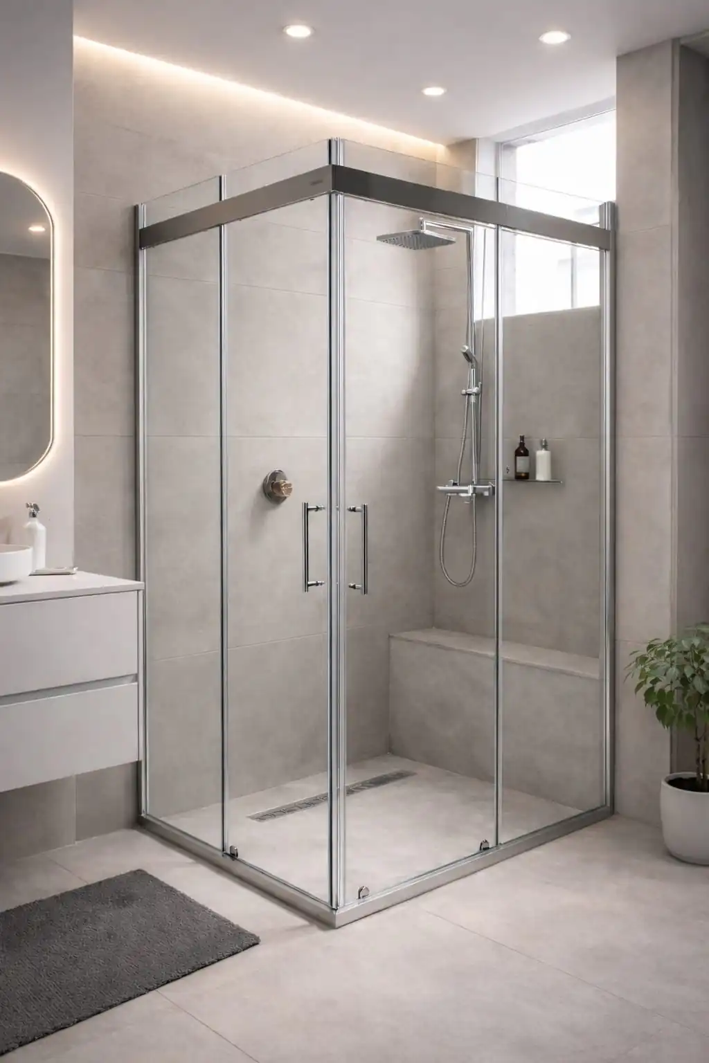 - Kapı Tipi ve Mekanizma: Sürgülü kapılar küçük banyolar için alan tasarrufu sağlarken idealdir. Menteşeli kapılar geniş bir giriş alanı sunar ve daha ferah bir his verir. Katlanır kapılar ise hem alan tasarrufu hem de geniş giriş esnekliği sunar. Rulmanların ve menteşelerin kalitesi, kapıların kullanım ömrünü ve sorunsuzluğunu doğrudan etkiler.